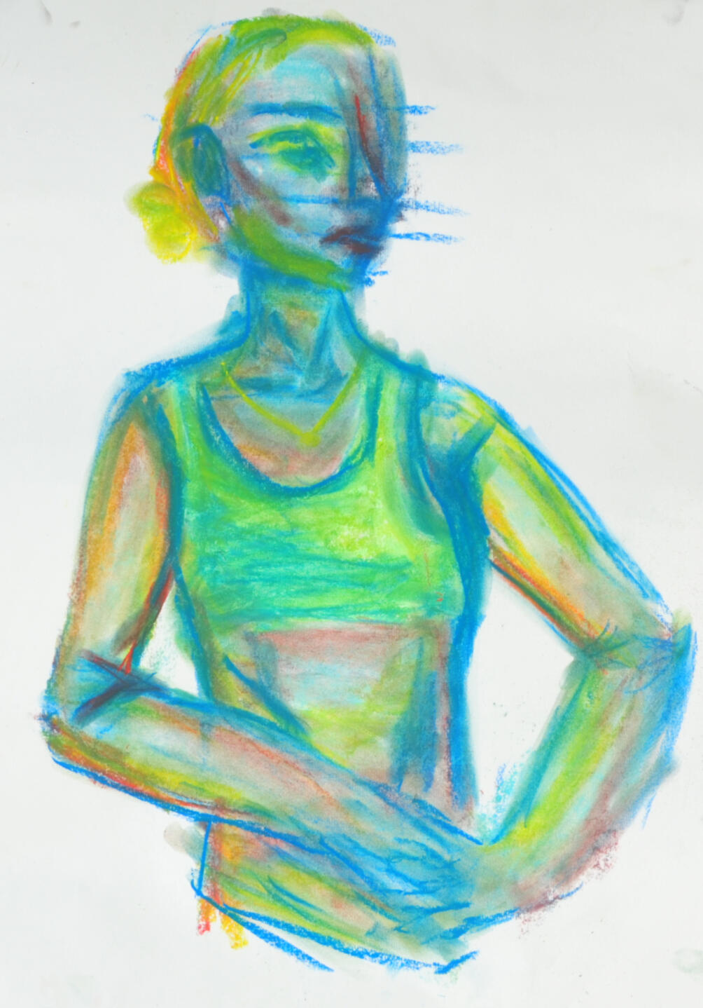 Here is a drawing I created from visual reference while I was in a life drawing class with chalk pastels, I wanted to make the piece very colourful and bright as to look more full of life.