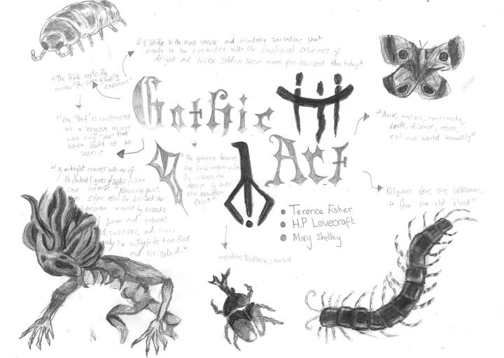 Here are the photos of my skull clay model in progress as well as the reference and final result, I decided to sculpt this after researching the gothic art subject and making a moodpboard and mind map about it to bring together the idea of what I was going to make as shown below.