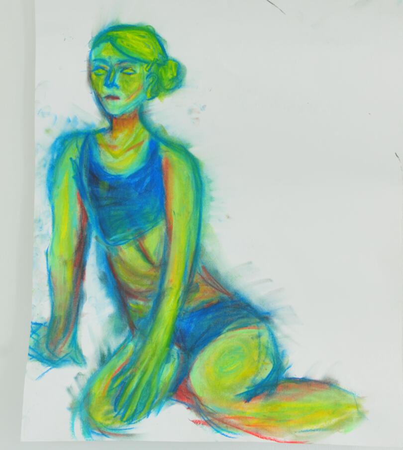 Here is a drawing I created from visual reference while I was in a life drawing class with chalk pastels, I wanted to make the piece very colourful and bright as to look more full of life.